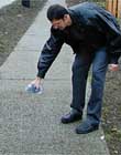 KATE REARDON/The Herald Vladimir Malinsky, project manager with Snohomish County public works engineering services, pours water on the walking path near Marysville to demonstrate its porous construction. The environmentally friendly project saved the county more than $114,000.