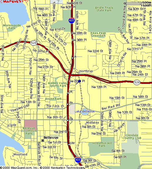 I-5: Take the WA-520 exit towards Bellevue/Kirkland. Merge onto WA-520 E. Take the 124TH AVE. N.E. exit. Turn right onto Northup Way. Turn left onto 116TH AVE NE, proceed until you see sign on the left "Building 1940" and turn left into driveway. From 405: Take the WA-520 exit towards Redmond. Take the 124TH AVE. N.E. exit. Turn right onto Northup Way. Turn left onto 116TH AVE NE, proceed until you see sign on the left "Building 1940" and turn left into driveway. |